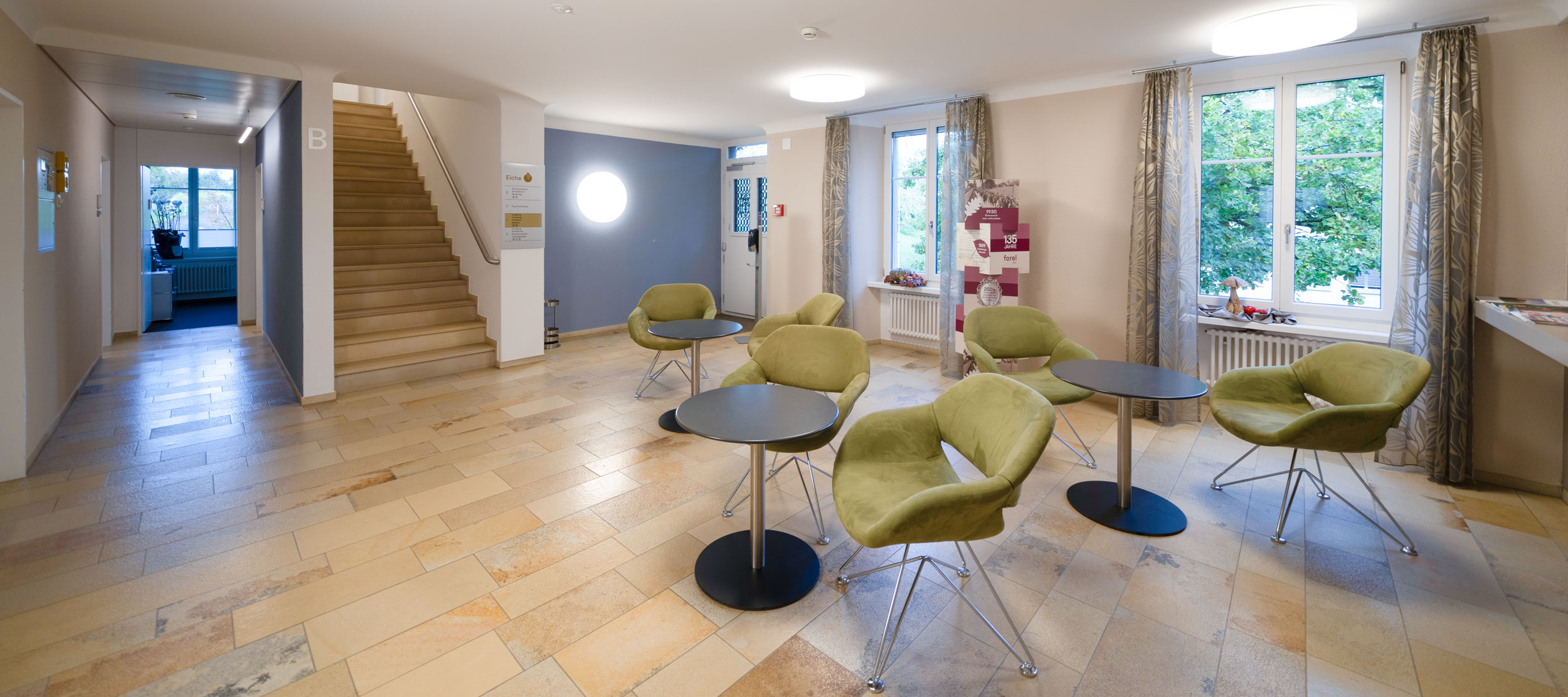 Unser stationäres Angebot richtet sich an Menschen mit einer Alkohol- oder Medikamentenabhängigkeitserkrankung, die eine langfristige Veränderung ihres Suchtmittelkonsums anstreben. Gestützt auf die persönlichen Möglichkeiten und Zielsetzungen beginnen sie, ihre Lebenssituation Schritt für Schritt zu verbessern – körperlich, seelisch und sozial. Neben der Hauptdiagnose behandeln wir auch begleitende psychische Erkrankungen und bieten Unterstützung bei der Nikotinentwöhnung.