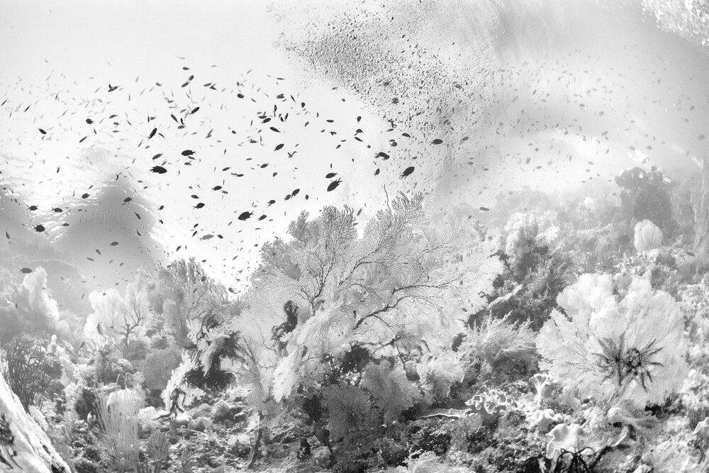 Die im Werk Liquid Garden dargestellte außergewöhnliche Artenvielfalt der Unterwasserwelt entfaltet eine surreale Atmosphäre. Dabei geht es Koentjoro weniger um die realistische Abbildung dieser Welt, sondern vielmehr um das subjektive Erleben – um das Eintauchen in den natürlichen Rhythmus des Meeres. In seinen Schwarz-Weiß-Fotografien wird die Träumerei in der Natur lebendig. Trotz ihrer klaren, reduzierten Bildsprache bewahren die Werke eine poetische Ehrfurcht vor der Schönheit des Unspektakulären.