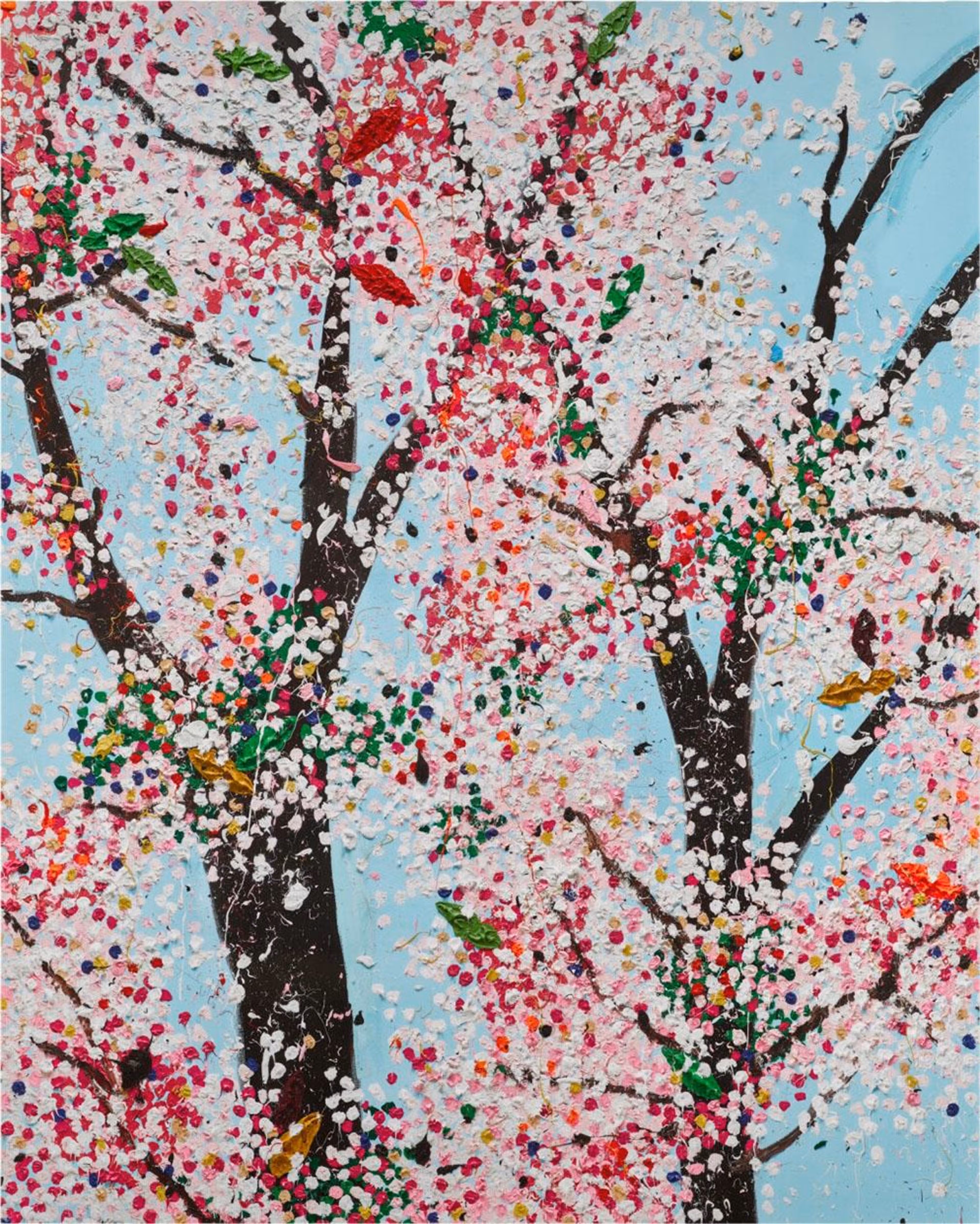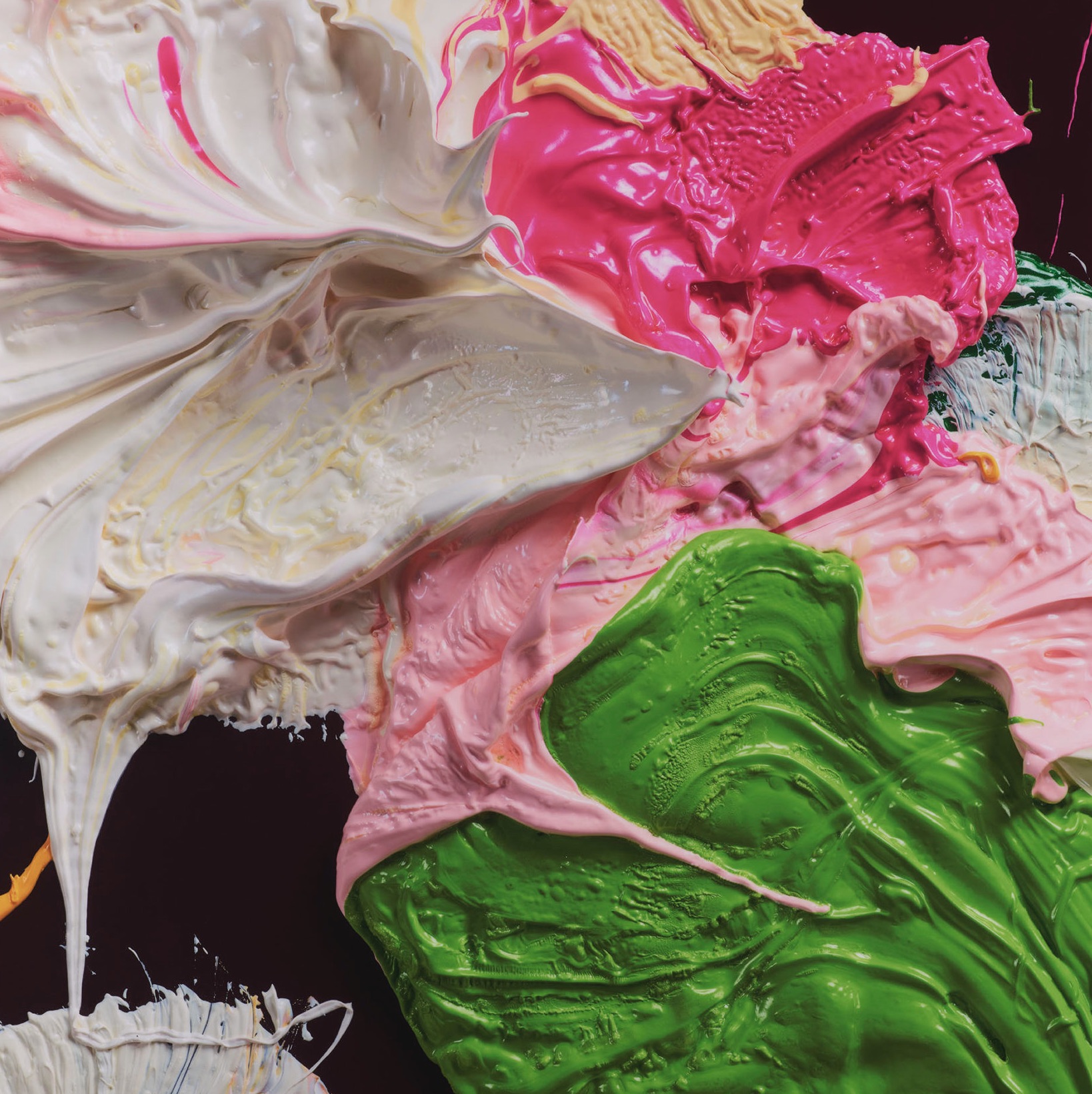 Bei «Fruitful»und «Forever» handelt es sich um zwei limitierte Kunstdruckserien, die Damien Hirst 2020 veröffentlichte und die auf Nahaufnahmen seiner monumentalen Gemäldeserie «Cherry Blossoms» (2018-2020) basieren. Die insgesamt 107 Leinwände gehen aus Hirsts intensiver Auseinandersetzung mit der Materialität der Farbe und ihrer sinnlichen Wirkung hervor. In Anlehnung an die pointillistische Malerei des 19. Jahrhunderts entstehen die Bildräume aus dichten Farbklecksen in Rosa- und Weisstönen, die die blühenden Kirschbäume formen. Der pastose Impasto-Auftrag erzeugt eine grobe, plastische Oberfläche, die je nach Lichteinfall eine starke Tiefenwirkung entfaltet. In den hochauflösenden Digitaldrucken auf Metall wird diese malerische Qualität durch eine aussergewöhnliche Farbbrillanz verstärkt. Mit dem Titel «Fruitful» scheint Hirst auf den Moment höchster Vitalität zwischen Blüte und Frucht zu verweisen, während das Werk «Forever» mit einem reduzierteren Bildausschnitt und starken Farbkontrasten den menschlichen Wunsch pointiert zum Ausdruck bringt, den flüchtigen Moment der Schönheit festzuhalten.