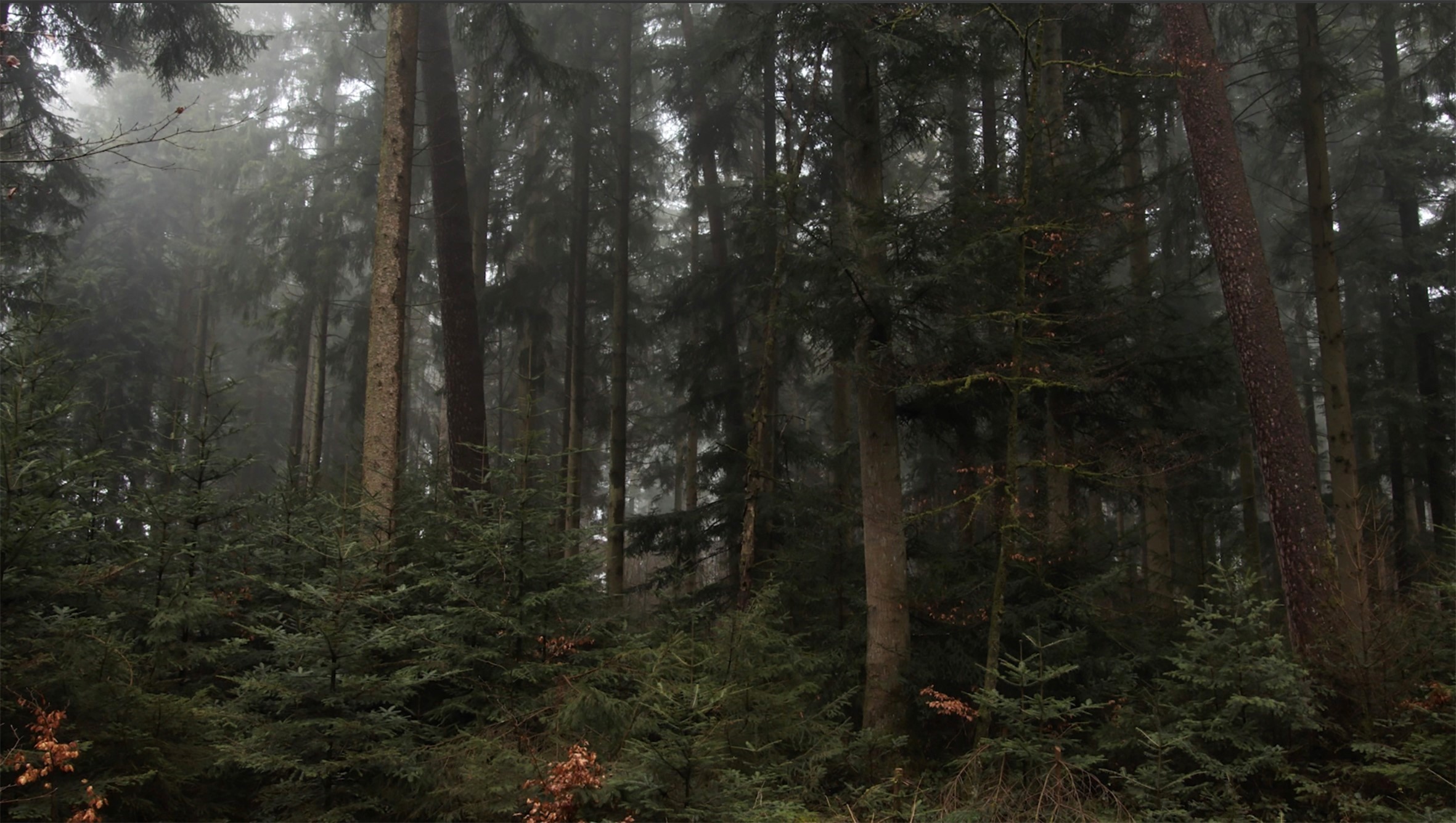 In der Videoinstallation «Im Jahr des Waldes» bündelt Bühler seine Naturbeobachtungen. Das Werk zeigt die Veränderungen von Licht, Wetter und Jahreszeiten in einem kontinuierlichen Rhythmus und offenbart die stetige Bewegung des Waldes. Wiederkehrende Aufnahmen derselben Waldabschnitte über ein Jahr hinweg machen einen Zyklus beobachtbar, der zugleich eine statische und eine dynamische Dimension hat: Obwohl die Kamera immer dasselbe Motiv aus der derselben Perspektive fokussiert, wird der Wald zum Akteur und entfaltet sein eigenes Schauspiel. Der scheinbare Widerspruch von Regungslosigkeit und gleichzeitiger Veränderung erzeugt eine meditative Stimmung.
