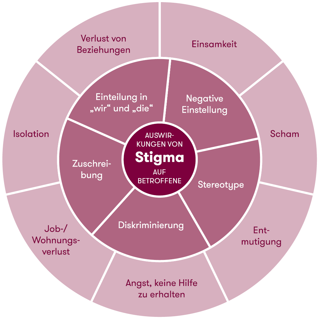 Suchtkranke Menschen werden in der Gesellschaft häufig mit negativen Etiketten versehen. Begriffe wie „Alki“, „Junkie“ oder „Süchtler“ verstärken bestehende Vorurteile und führen zur Stigmatisierung und sozialen Ausgrenzung. Dies kann dazu führen, dass Betroffene sich selbst abwerten und sich zurückziehen.