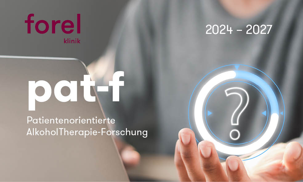 Mit der Studie PAT-F (Patientenorientierte Alkoholtherapie-Forschung) startet die Forel Klinik eine der ersten partizipativen Studien im Bereich der Alkoholtherapieforschung, welche die Erlebensperspektive der Patienten umfassend und systematisch erfasst. Dadurch kann ein vertieftes Verständnis abhängigkeits- und therapierelevanter Prozesse erreicht und innovative Wege in der Alkoholtherapie entwickelt werden.
